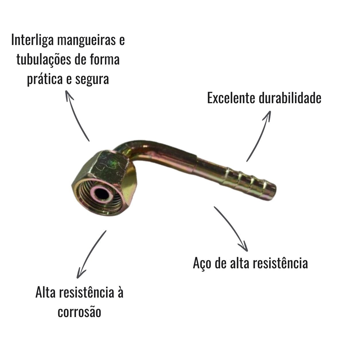Formato: 90º — Permite redirecionamento do fluxo sem a necessidade de curvas ou dobras excessivas na mangueira