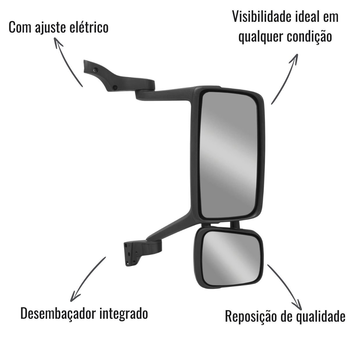 Com ajuste elétrico e desembaçador integrado, proporciona mais conforto ao motorista e visibilidade ideal em qualquer condição climática. A instalação é prática, mantendo o padrão original e valorizando o conjunto visual do veículo.