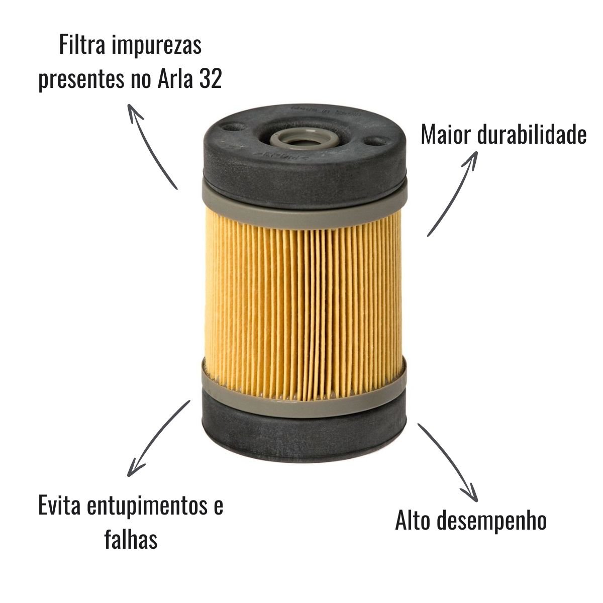 Fabricado com materiais de alta qualidade, oferece excelente capacidade de retenção de partículas e acompanha conjunto de vedações, garantindo vedação eficiente e encaixe preciso na instalação. É uma peça fundamental para a manutenção preventiva do sistema ARLA, aumentando a durabilidade dos componentes e evitando paradas indesejadas.