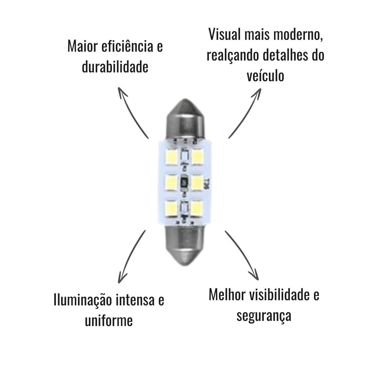 As lâmpadas em LED Autopoli Torpedo SV8,5-8 36mm são ideais para quem busca uma iluminação mais eficiente, durável e econômica para luz de teto e luz de placa. Com tecnologia LED de alto desempenho, ela proporciona mais brilho e visibilidade em comparação às lâmpadas halógenas convencionais, consumindo muito menos energia. Com 1,8W de potência, essa lâmpada LED oferece excelente luminosidade de 216 lúmens, garantindo uma iluminação mais clara e uniforme. Além disso, possui seis LEDs distribuídos estrategicamente para otimizar o desempenho e aumentar a vida útil do produto. Seu formato Torpedo de 36mm com encaixe SV8,5-8 é compatível com diversos veículos, facilitando a instalação sem necessidade de adaptações.