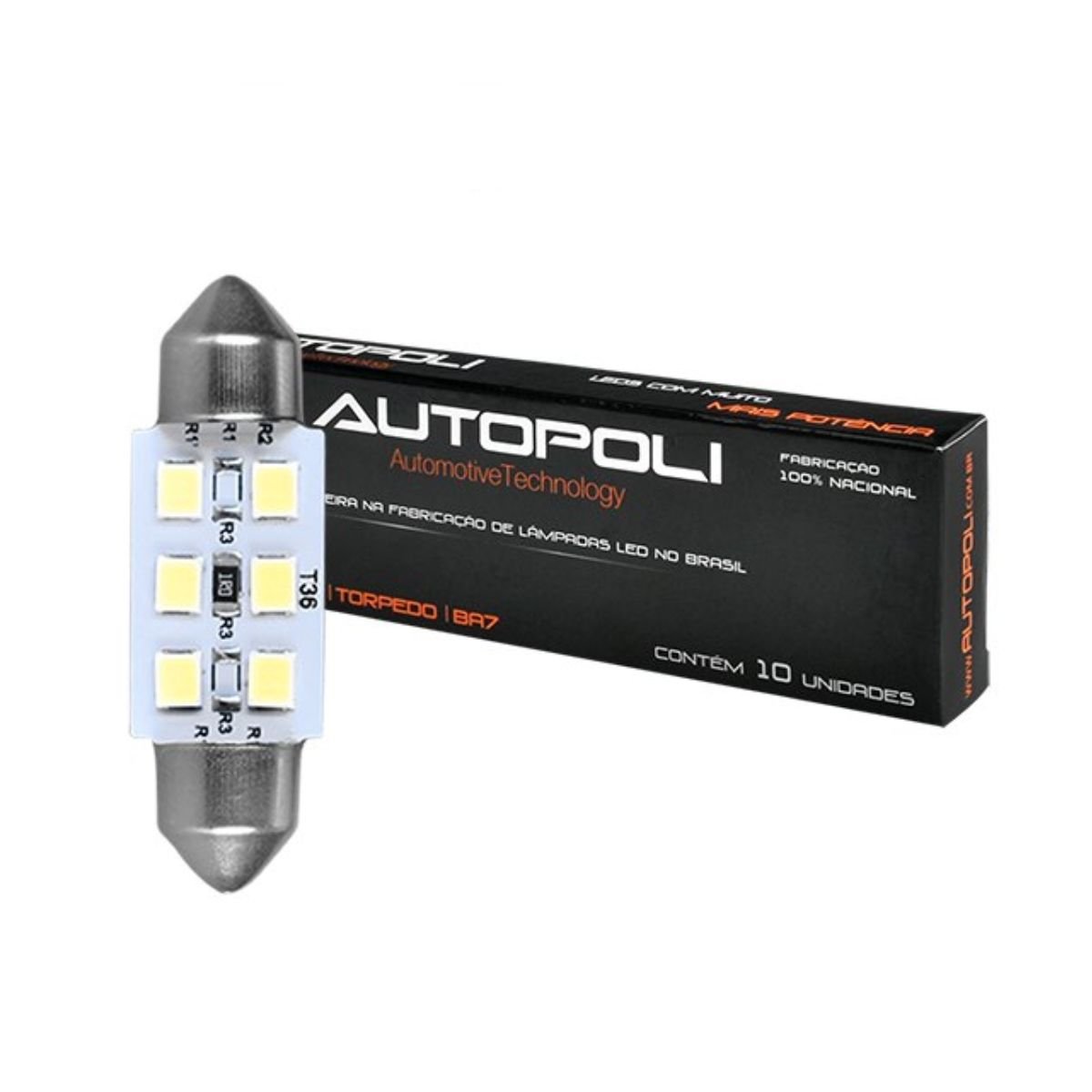 Caixa com 10 unidades de lâmpadas LED Autopoli branco Torpedo - SV8,5-8 36mm