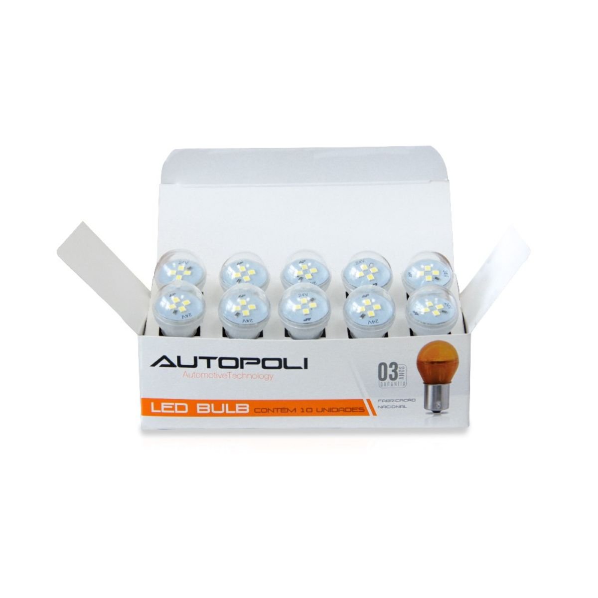 Caixa com 10 unidades de lâmpadas LED Autopoli branco BA15S-21 (1141)