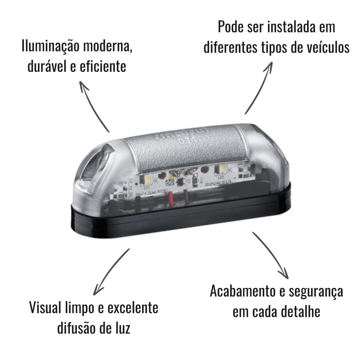 Equipada com tecnologia LED e tensão bivolt (12/24V), pode ser instalada em diferentes tipos de veículos, entregando alta luminosidade e longa vida útil. Produzida pela Sinalsul, referência em qualidade e confiabilidade, essa lanterna com conexão por fios é prática, resistente e ideal para quem valoriza acabamento e segurança em cada detalhe.