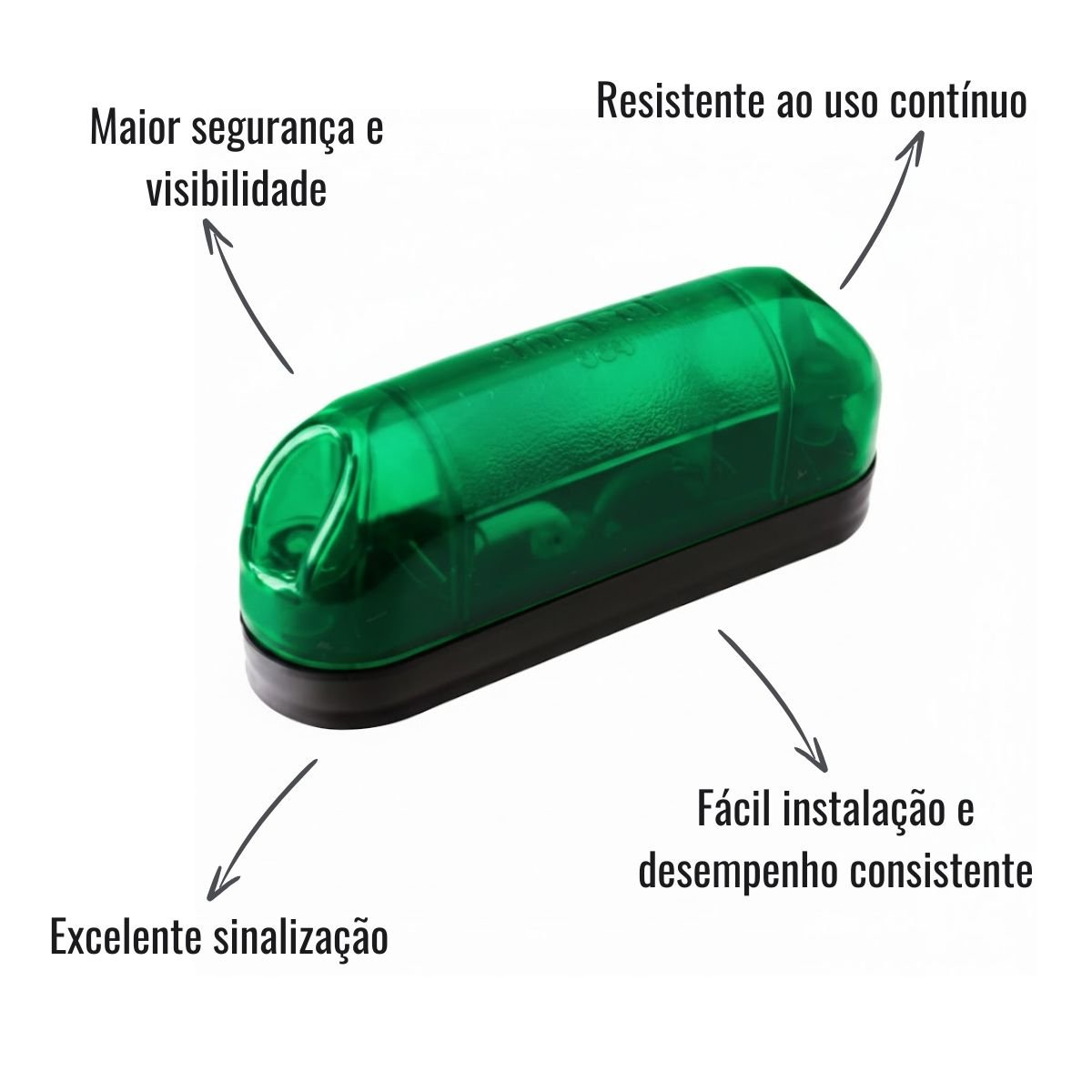 A Lanterna Delimitadora Sinalsul Verde é ideal para reforçar a sinalização e visibilidade do veículo, contribuindo para uma condução mais segura, especialmente em caminhões, reboques e implementos rodoviários. Seu design compacto e funcional permite instalação versátil em diferentes aplicações, garantindo iluminação clara e eficiente da área delimitada.