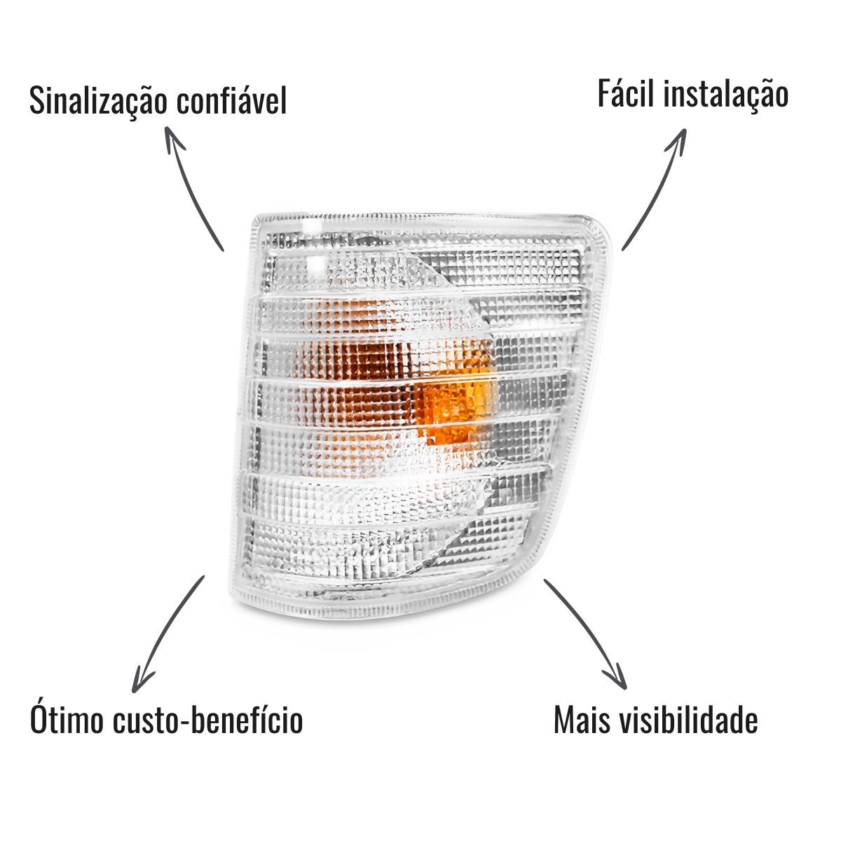 A lanterna direcional dianteira esquerda Pradolux PL0448.04.02 foi desenvolvida para caminhões Mercedes-Benz das linhas 1218, 1418, 1620, 1214, 1414 e 1614, oferecendo sinalização confiável e visual moderno com lente cristal. Seu encaixe é preciso, garantindo fácil instalação e reposição rápida.