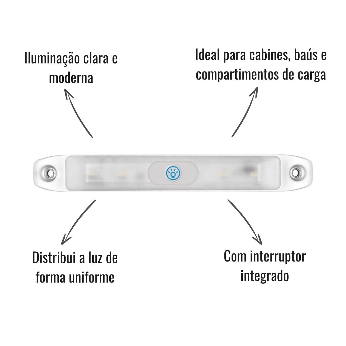 A Lanterna Interna LED Sinalsul 2261 oferece iluminação clara e moderna para o interior do veículo, combinando eficiência e longa durabilidade. Com design compacto e lente difusa, distribui a luz de forma uniforme, proporcionando um ambiente bem iluminado e confortável, ideal para cabines, baús e compartimentos de carga.