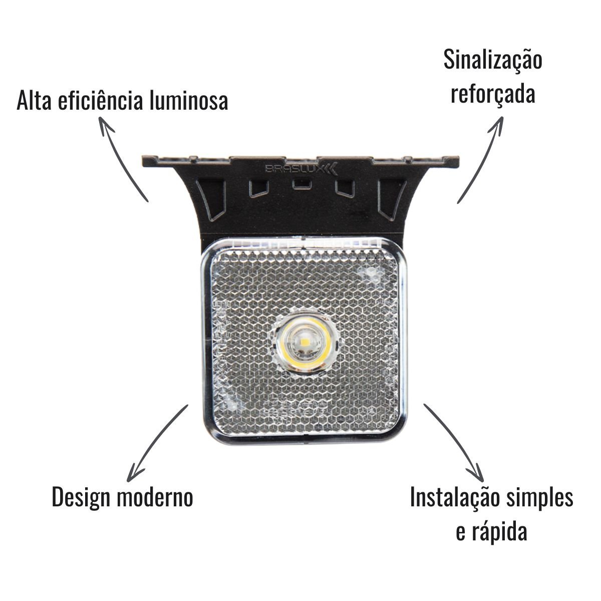 A Lanterna Lateral LED Braslux Quadrada Cristal com Suporte garante alta eficiência luminosa e maior visibilidade em qualquer condição, aumentando a segurança do transporte. Com tecnologia LED bivolt (12/24V), oferece longa durabilidade e iluminação intensa.
