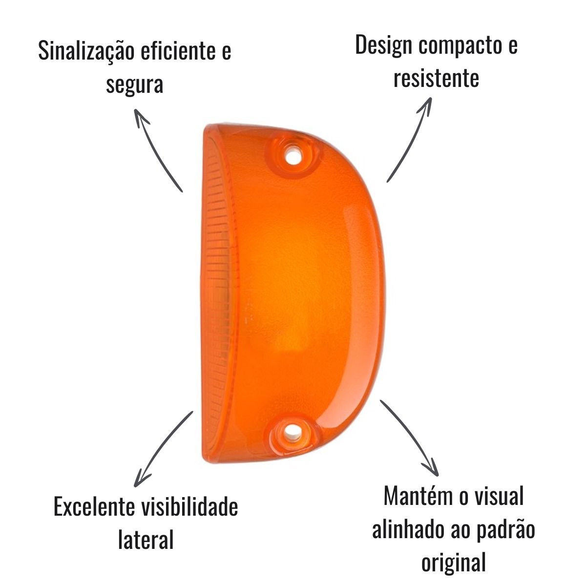 Com instalação simples e compatibilidade para ambos os lados, utiliza lâmpadas convencionais (não inclusas), facilitando a substituição. A cor amarela reforça a sinalização direcional, proporcionando mais segurança nas manobras e no tráfego rodoviário.