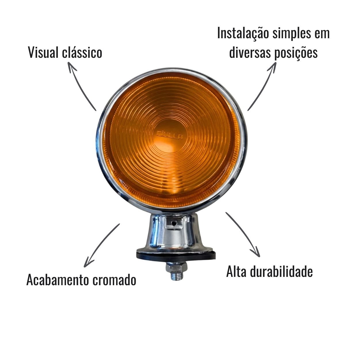 Produzida pela Ciulla com corpo cromado, essa lanterna aceita lâmpadas convencionais (não inclusas) e proporciona instalação simples em diversas posições, adicionando um toque diferenciado ao acabamento externo. Uma solução prática e visualmente marcante para quem busca segurança e personalidade no veículo.