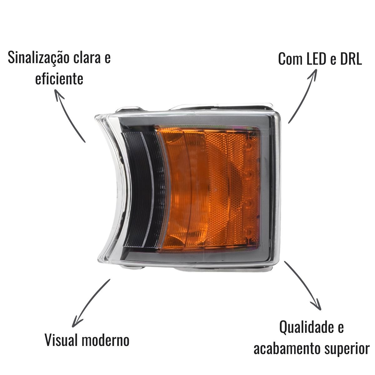Conta com 12 LEDs de alta intensidade, além de luz de posição e DRL em LED cristal, proporcionando excelente visibilidade tanto de dia quanto à noite. A função de pisca utiliza lâmpada de 21W (não inclusa), oferecendo compatibilidade com o sistema original do veículo.