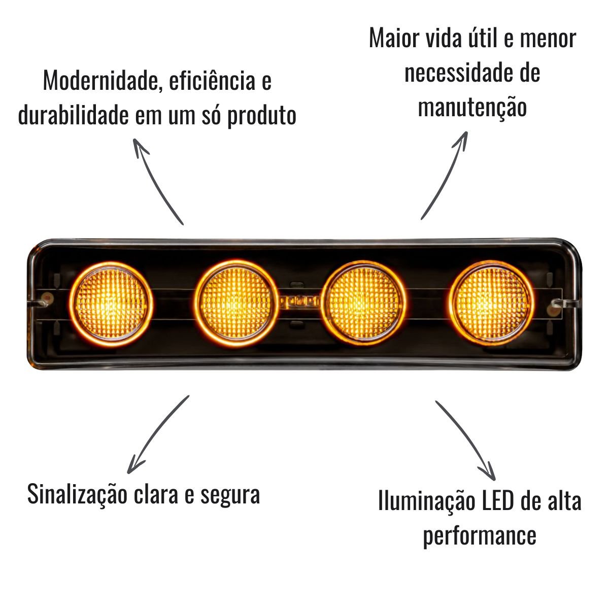 Funcionando em 24V, vem equipada com soquete e iluminação LED de alta performance, garantindo maior vida útil e menor necessidade de manutenção. É a solução ideal para quem deseja manter o caminhão bem sinalizado e dentro dos padrões mais exigentes.