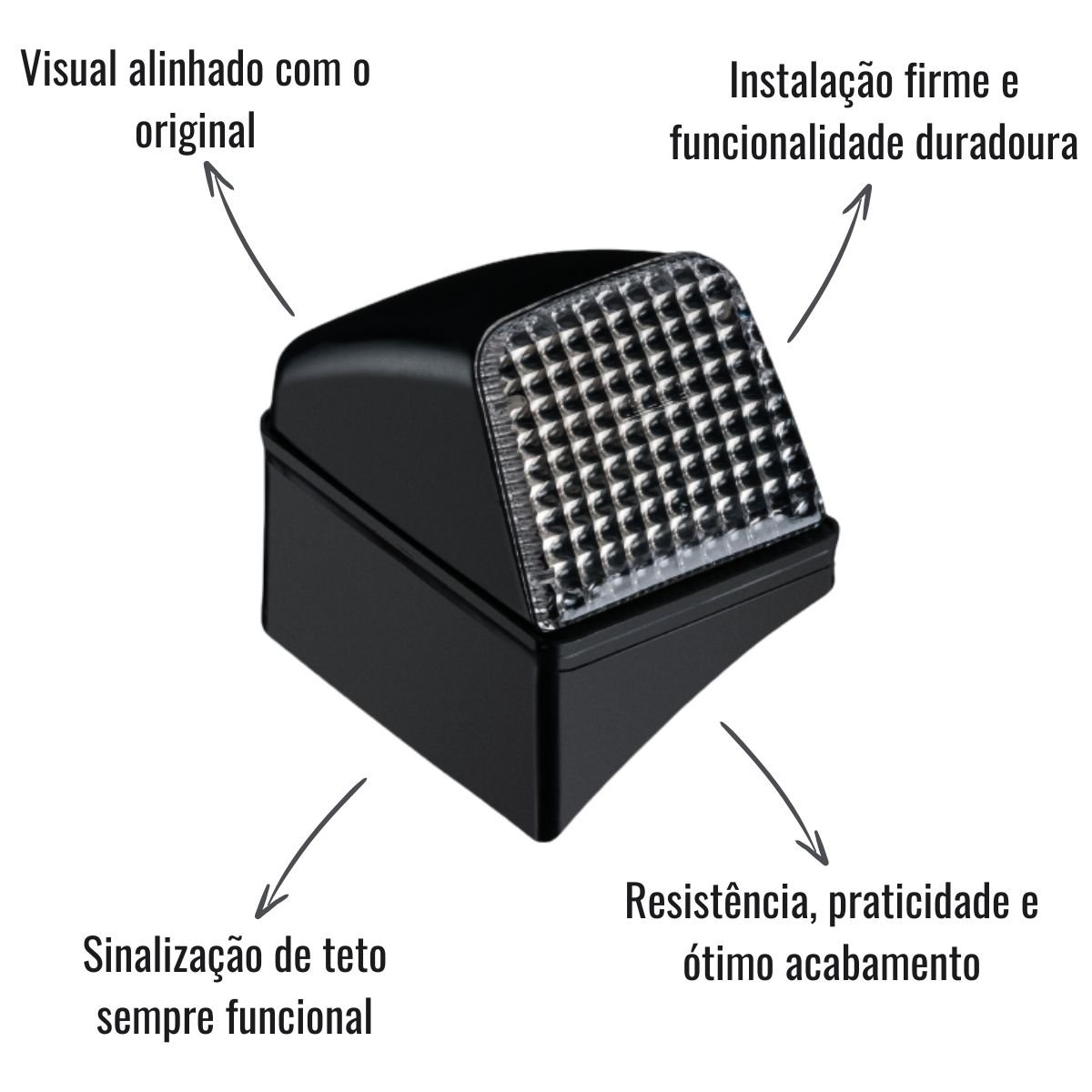Seu sistema de fixação com clicks entre base e lente, aliado à vedação por ultrassom, proporciona encaixe firme e durabilidade prolongada. Compatível com lâmpada (não inclusa), é a escolha ideal para manter a sinalização superior do veículo sempre funcional e segura.
