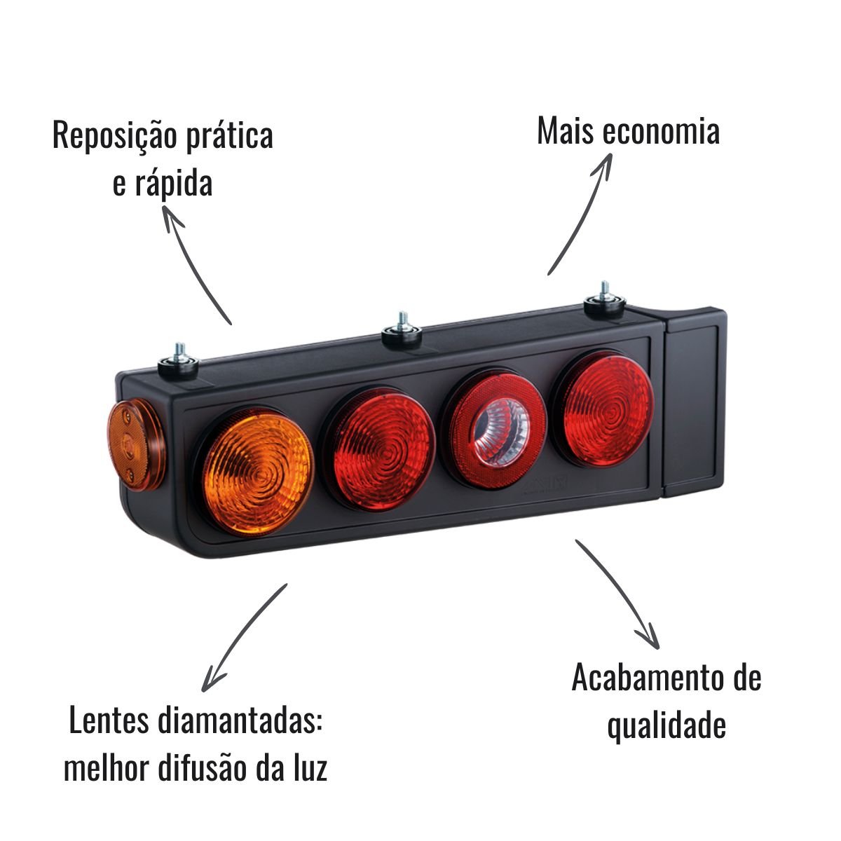 Fabricada em material resistente e com acabamento de qualidade, essa lanterna oferece encaixe preciso e instalação simples, mantendo a originalidade do veículo. O modelo conta com aba de proteção e fixação superior, o que contribui para maior durabilidade mesmo em condições severas de uso.