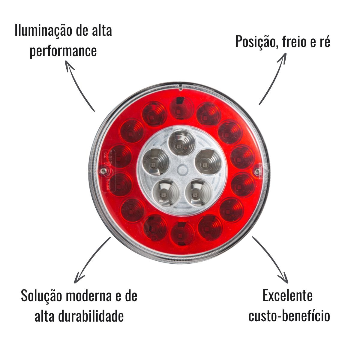 Com funções de posição, freio e ré, proporciona sinalização precisa em qualquer condição de uso. Sua tecnologia LED de alto desempenho assegura longa vida útil e excelente visibilidade.