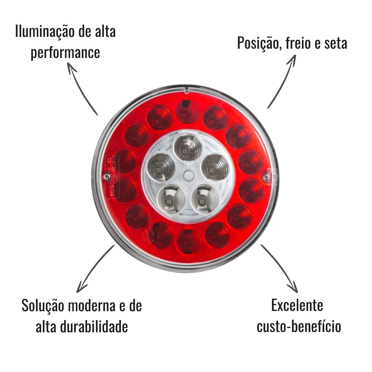 Com funções de posição, freio e seta, proporciona sinalização precisa em qualquer condição de uso. Sua tecnologia LED de alto desempenho assegura longa vida útil e excelente visibilidade.