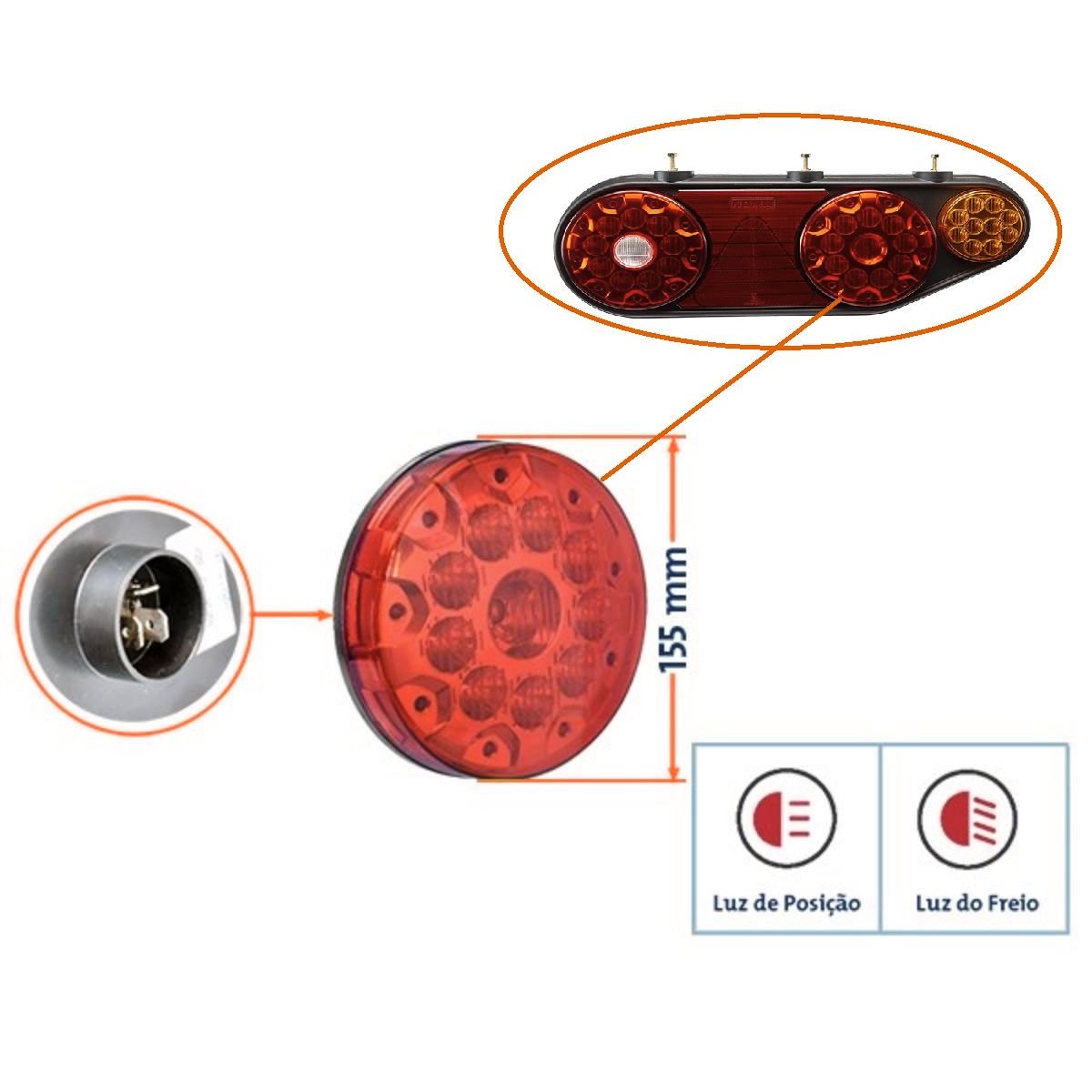 1 unidade de lanterna traseira LED Braslux Ø155mm