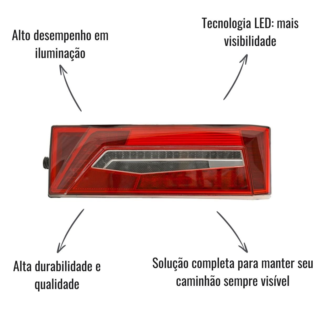 Seu corpo em ABS proporciona excelente resistência a impactos, vibrações e intempéries. O conector facilita a instalação sem adaptações, enquanto o design moderno valoriza o visual original do caminhão.