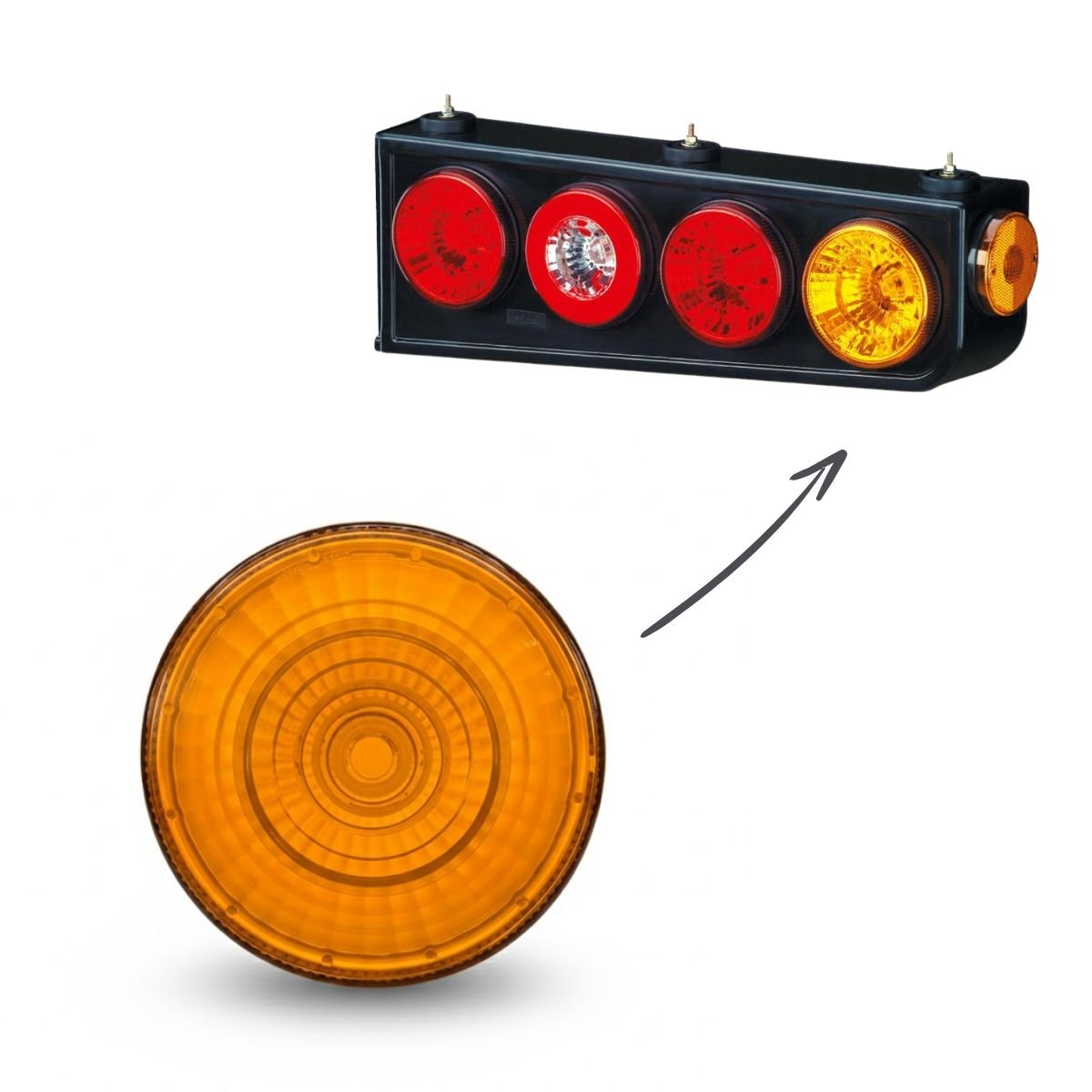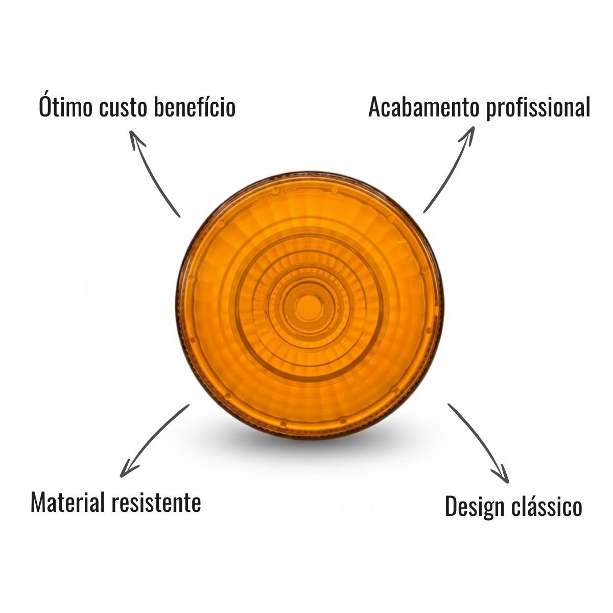Com corpo amarelo, diâmetro de 125 mm e acabamento resistente, esta lanterna suporta vibração, sol e chuva sem perder eficiência. A fixação traseira segue o padrão original e a conexão via soquete (não incluso) facilita a substituição no dia a dia. Uma peça confiável para quem busca manter o implemento sempre alinhado, seguro e com visual impecável.