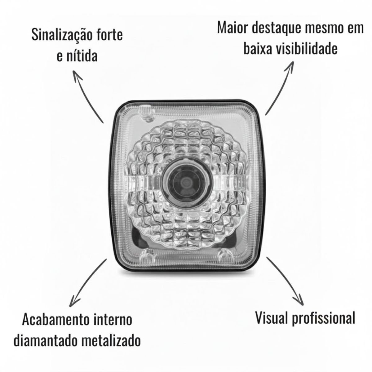 A Lanterna Traseira Sinalsul Cristal para Guerra oferece uma sinalização forte, nítida e confiável para implementos da linha Guerra, mantendo o padrão original das lanternas Sinalsul 1202 e 1241. Seu acabamento interno diamantado metalizado potencializa o brilho das lâmpadas, garantindo maior destaque mesmo em dias chuvosos ou durante a operação noturna.