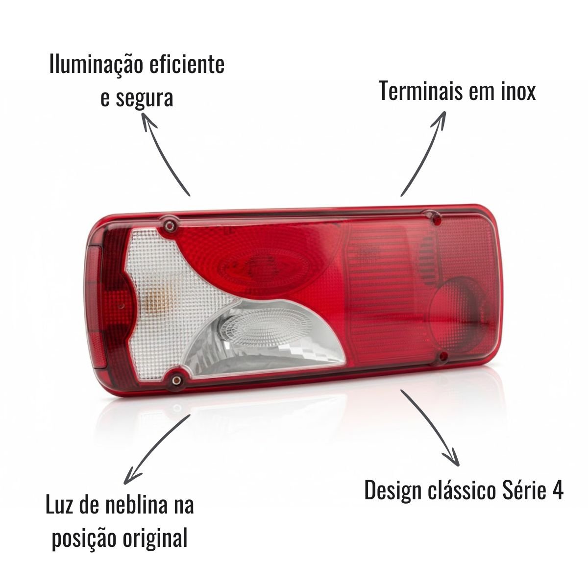 Projetada com terminais em inox e fixação no padrão original, entrega instalação simples, encaixe perfeito e longa vida útil. A construção da Sinalsul garante resistência e desempenho consistente, enquanto o design segue fiel ao visual clássico da Série 4. Uma peça confiável, robusta e pronta para manter sua Scania sempre bem iluminada e dentro dos padrões de segurança.