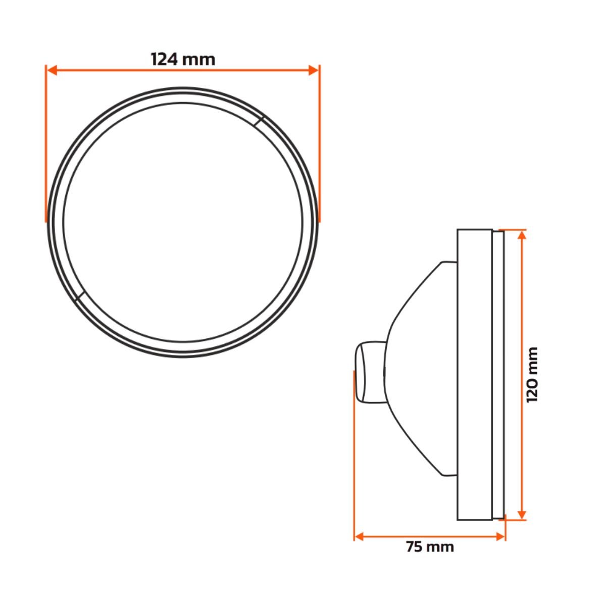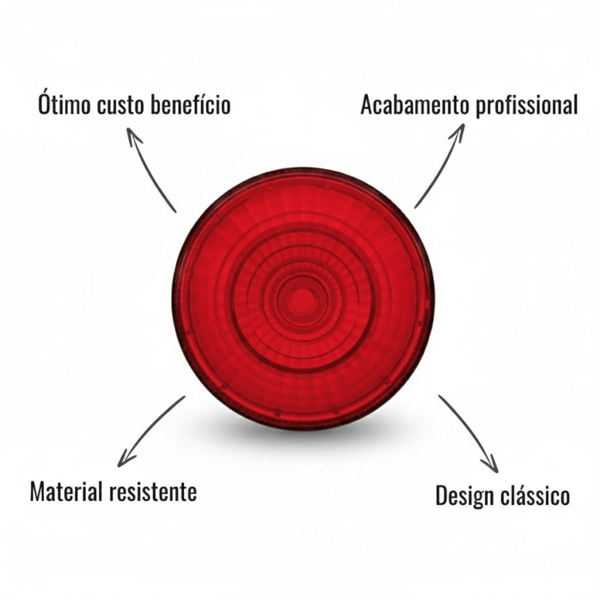 Com corpo vermelho, diâmetro de 125 mm e acabamento resistente, esta lanterna suporta vibração, sol e chuva sem perder eficiência. A fixação traseira segue o padrão original e a conexão via soquete (não incluso) facilita a substituição no dia a dia. Uma peça confiável para quem busca manter o implemento sempre alinhado, seguro e com visual impecável.