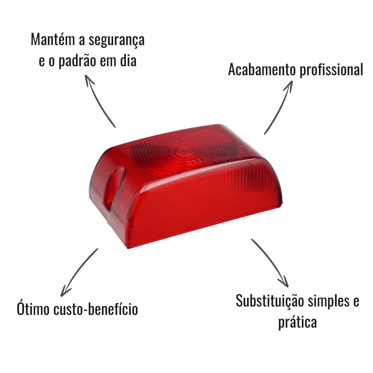 A Lente Vermelha Sinalsul para Baú Modelo Tijolão Arredondada entrega uma iluminação clara e bem destacada, ideal para reforçar a visualização lateral e traseira do implemento. Seu formato arredondado no estilo “tijolão” mantém o visual original das lanternas da linha Sinalsul, garantindo encaixe preciso e acabamento uniforme no conjunto.