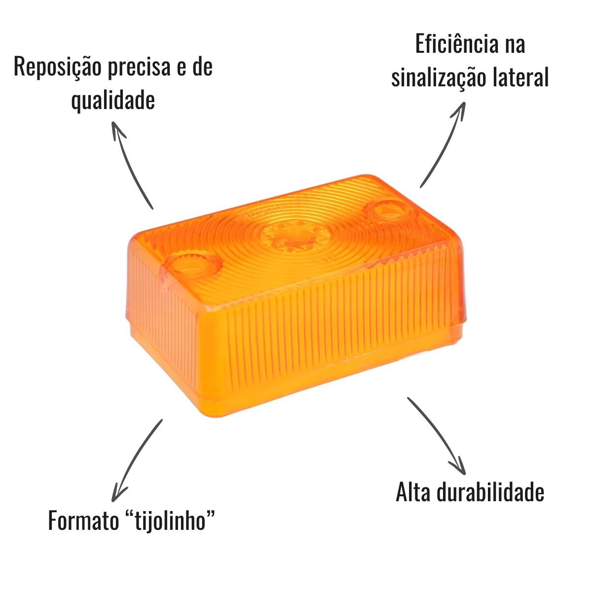 Fabricada com material resistente e acabamento de fábrica, garante boa durabilidade mesmo exposta ao sol, chuva e impactos comuns do uso rodoviário. Seu tom amarelo vibrante mantém a eficiência na sinalização lateral, reforçando a segurança do veículo.