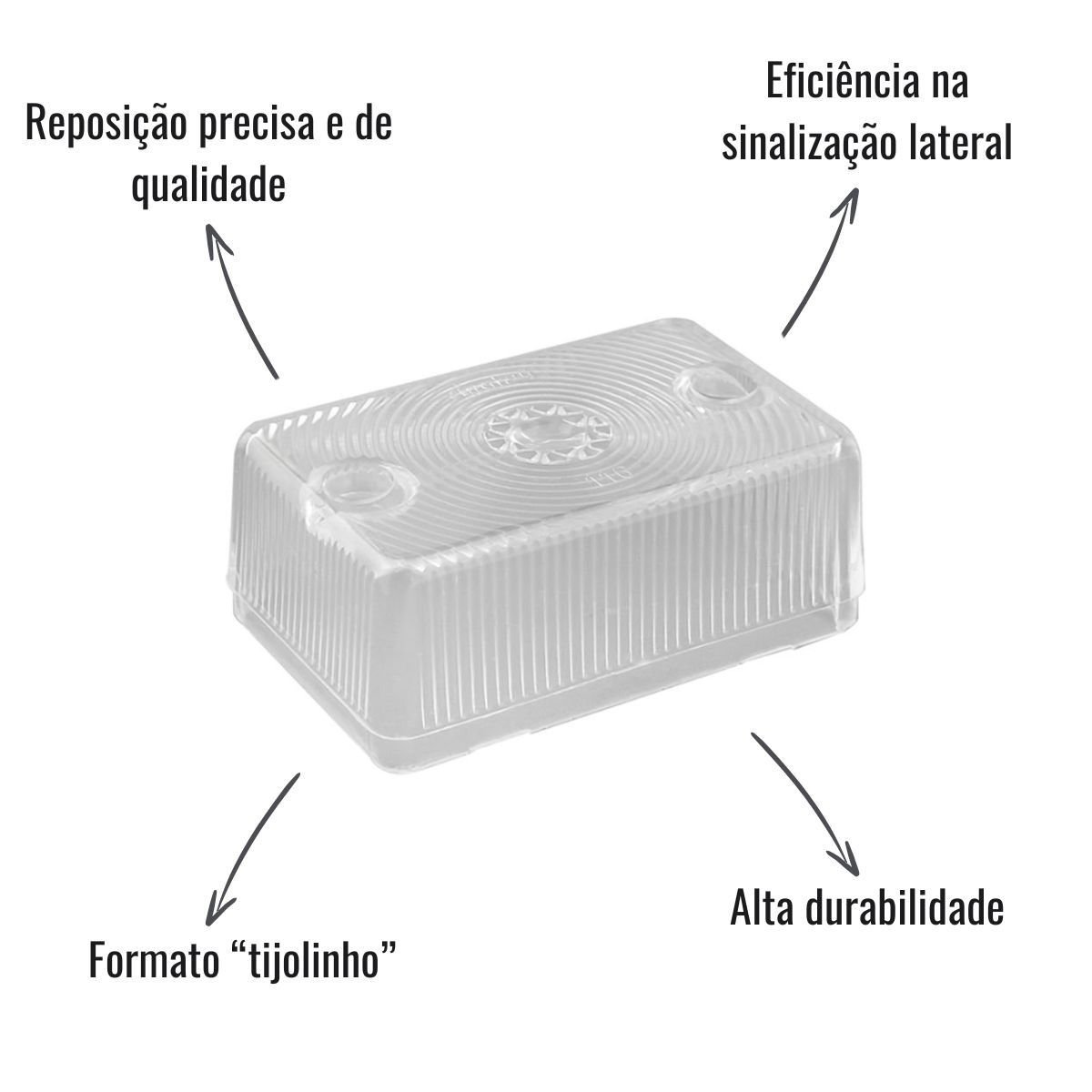 Fabricada com material resistente e acabamento de fábrica, garante boa durabilidade mesmo exposta ao sol, chuva e impactos comuns do uso rodoviário. Seu tom cristal mantém a eficiência na sinalização lateral, reforçando a segurança do veículo.