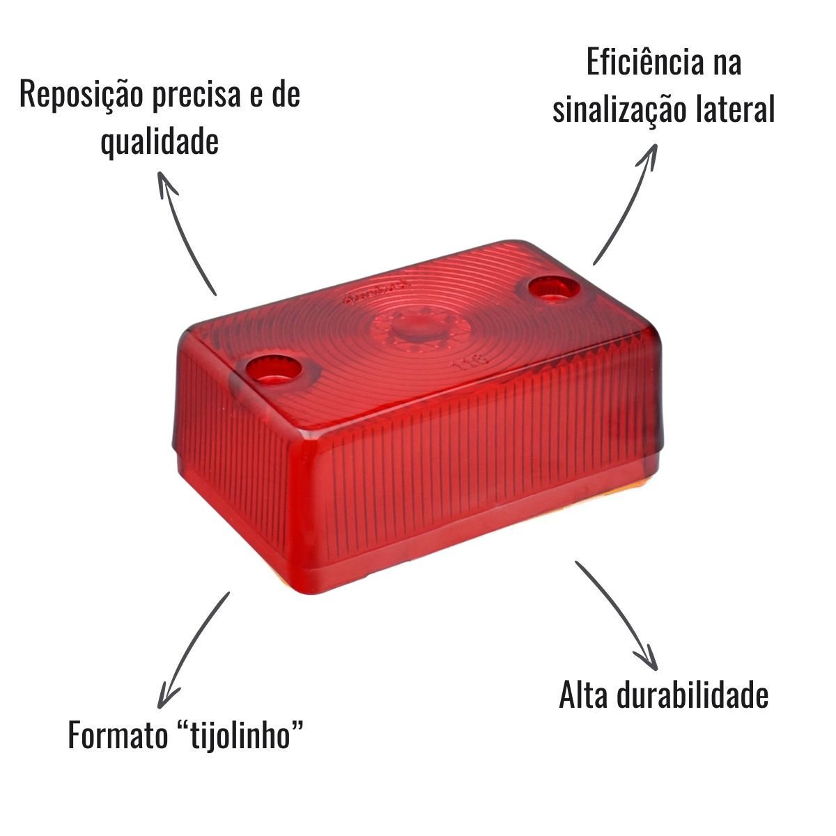 Fabricada com material resistente e acabamento de fábrica, garante boa durabilidade mesmo exposta ao sol, chuva e impactos comuns do uso rodoviário. Seu tom vermelho vibrante mantém a eficiência na sinalização lateral, reforçando a segurança do veículo.