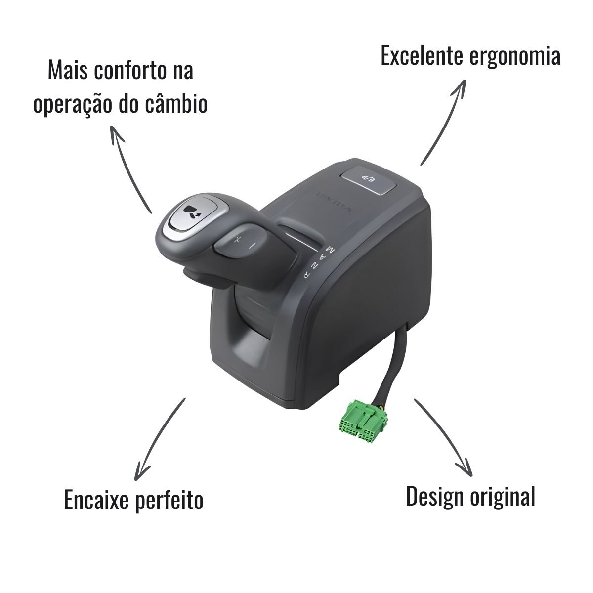 Para quem busca desempenho e conforto na operação do câmbio automatizado, a manopla I-Shift é o item ideal para os modelos Volvo FH, FM, FMX e VM. Fabricada em plástico resistente, oferece encaixe perfeito e excelente ergonomia, mantendo o padrão original de fábrica.
