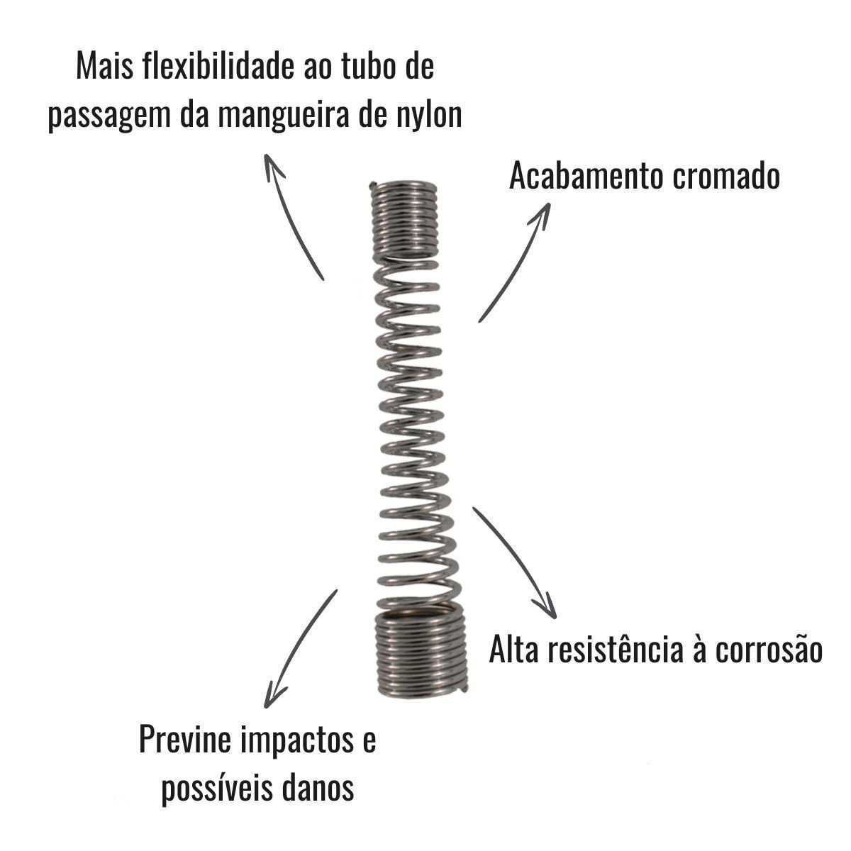 No rodoar proporciona flexibilidade ao tubo de passagem da mangueira de nylon, prevenindo impactos e possíveis danos