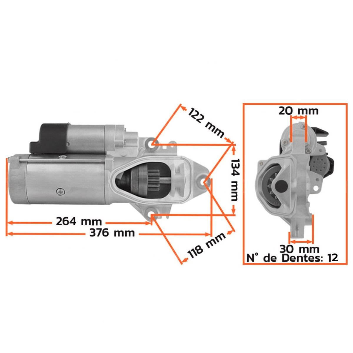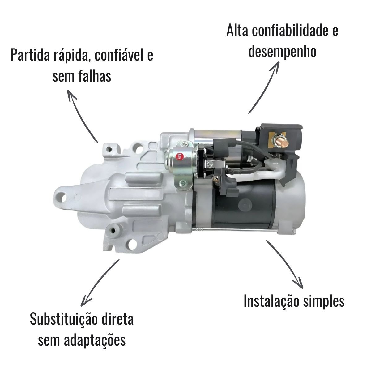 Com corpo robusto e projeto elétrico compatível com os sistemas de 24 V, esse motor de partida entrega potência de 5,5 kW, assegurando torque suficiente para acionar motores de alta compressão com eficiência. É fornecido completo, pronto para instalação, e compatível com os códigos originais 3163089, 3064855 e 2675514, o que facilita a substituição direta sem adaptações mecânicas ou elétricas.