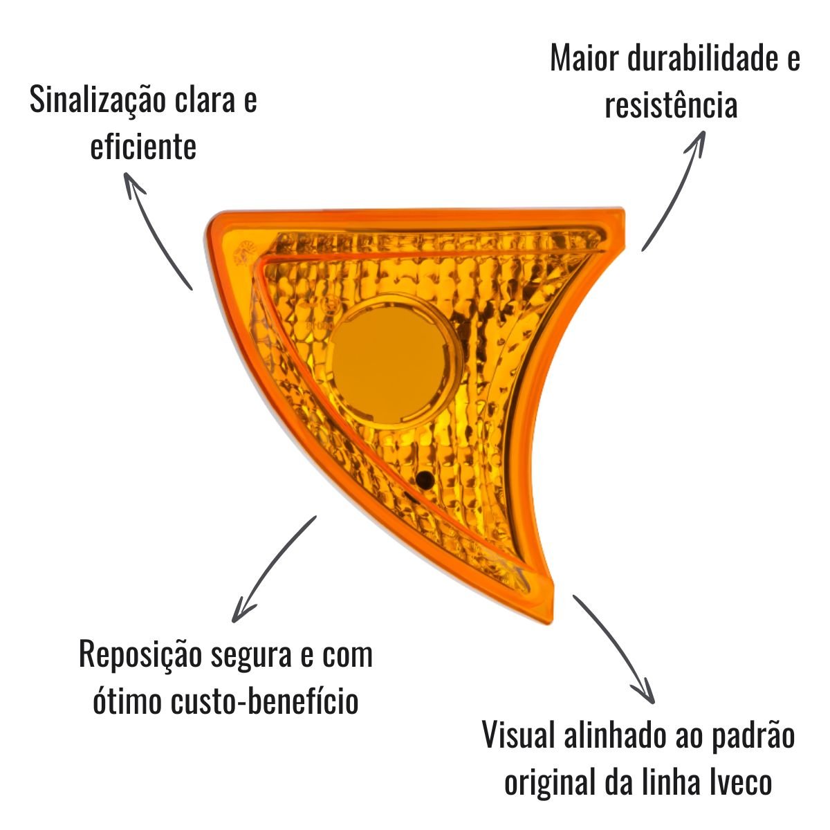 Seu design robusto e acabamento de qualidade proporcionam encaixe preciso e visual alinhado ao padrão original da linha Iveco. Ideal para quem busca reposição segura e com ótimo custo-benefício no sistema de iluminação dianteira.