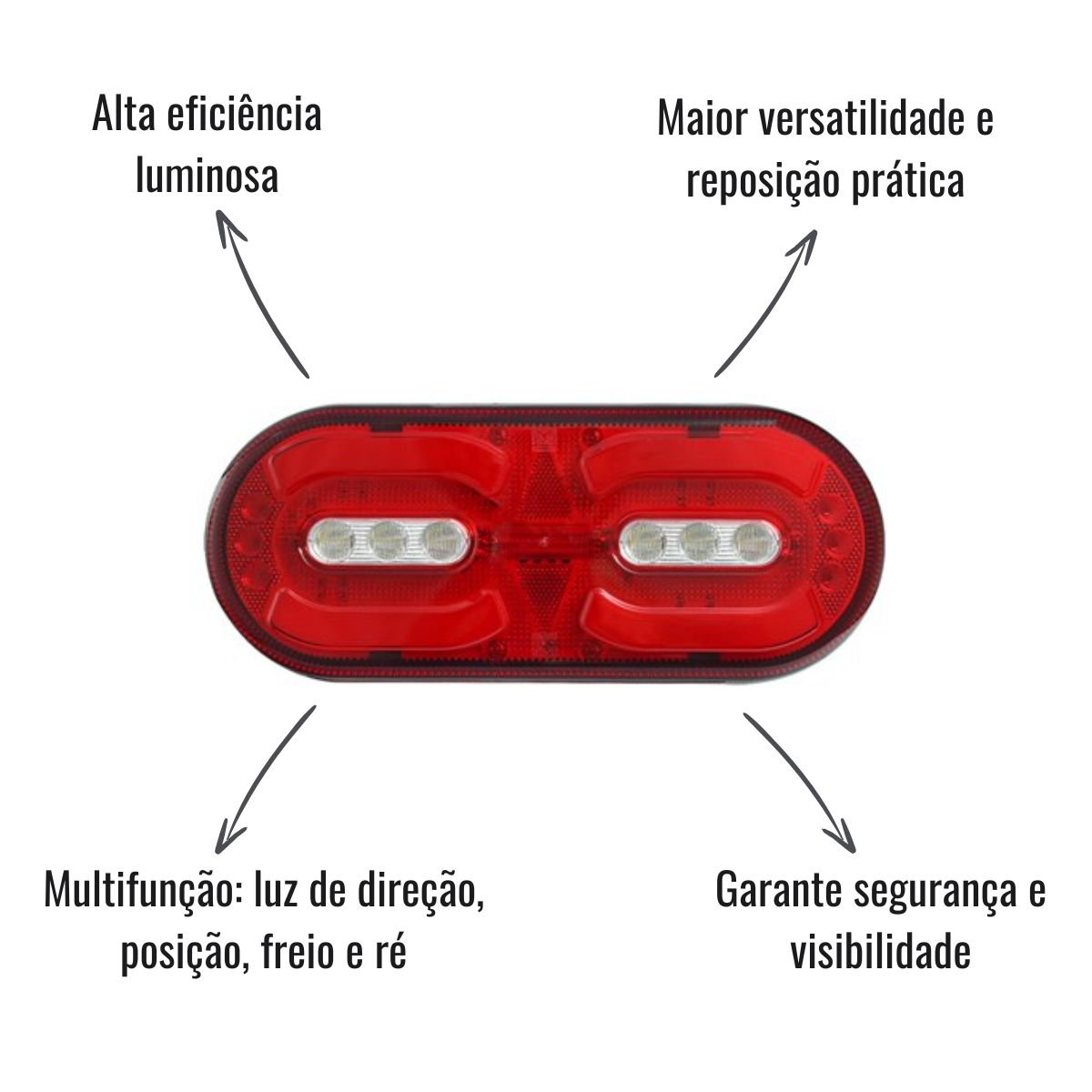 Multifunção: Luz de direção, posição, freio e ré