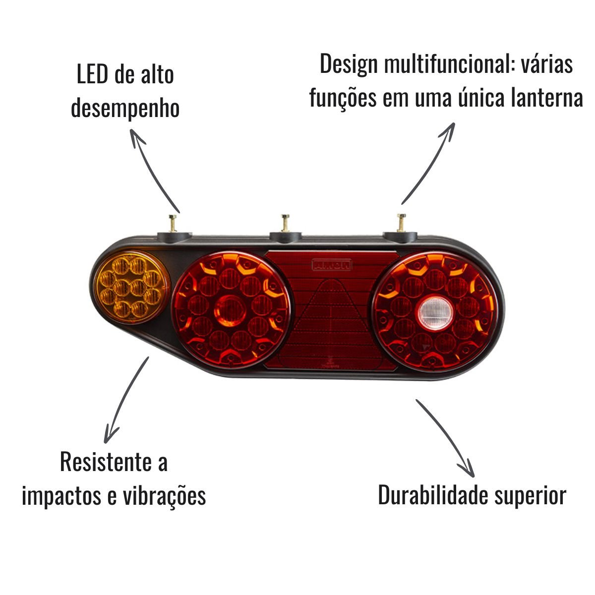 A lanterna traseira LED multifunção Braslux foi projetada para oferecer máxima segurança e visibilidade para carretas Noma fabricadas a partir de 2012. Com tecnologia LED de alto desempenho, garante iluminação intensa e nítida, reduzindo riscos de acidentes. Seu design multifuncional combina as funções de posição, freio, seta, ré e retrorrefletor em um único componente, proporcionando praticidade e eficiência na sinalização do veículo. Fabricada com materiais de alta resistência, essa lanterna suporta as condições mais exigentes das estradas, como vibrações, impactos e variações de temperatura, garantindo durabilidade superior.