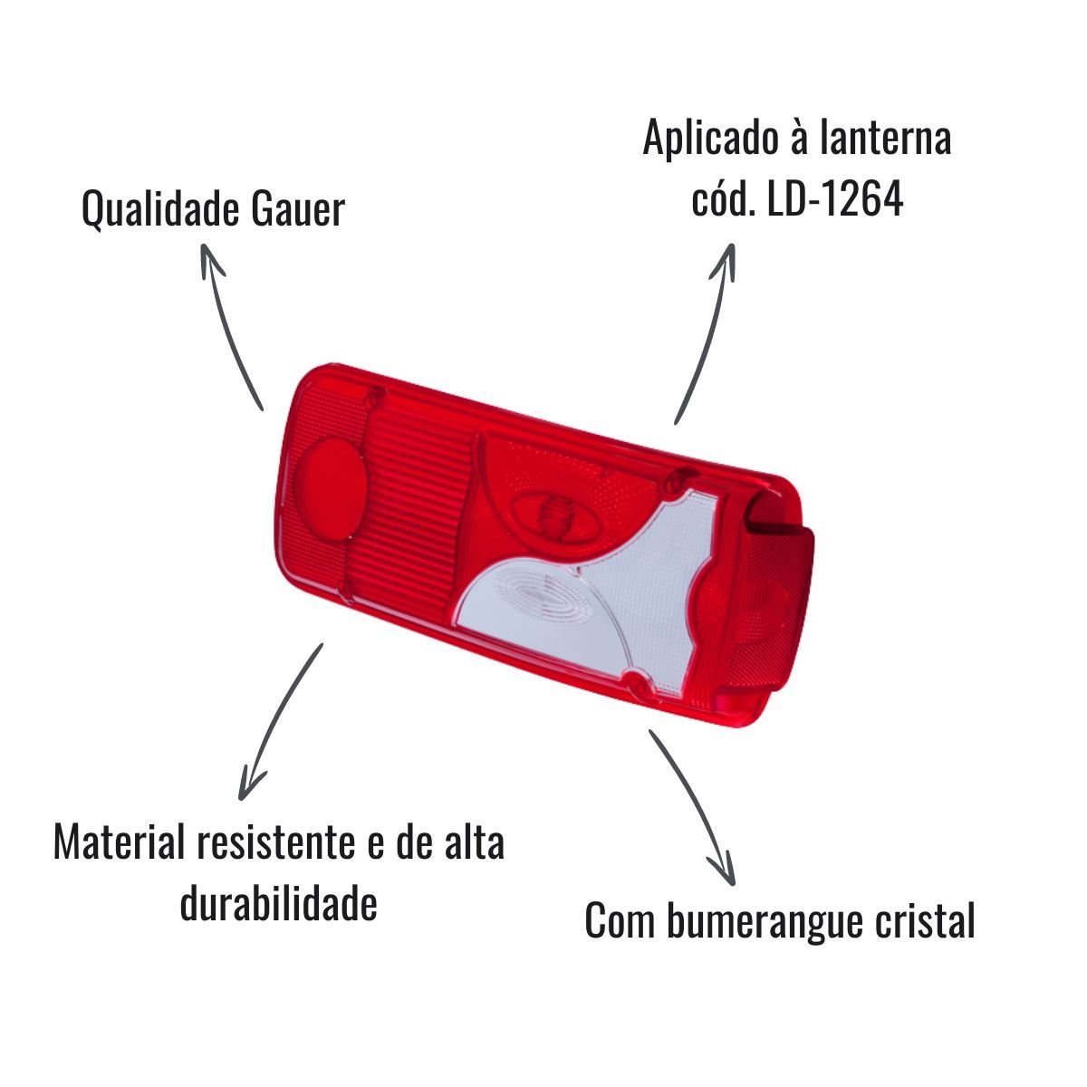 Com bumerangue cristal, mantém o padrão estético original do caminhão e é compatível com a lanterna Gauer cód. LD-1264 e LE-1263