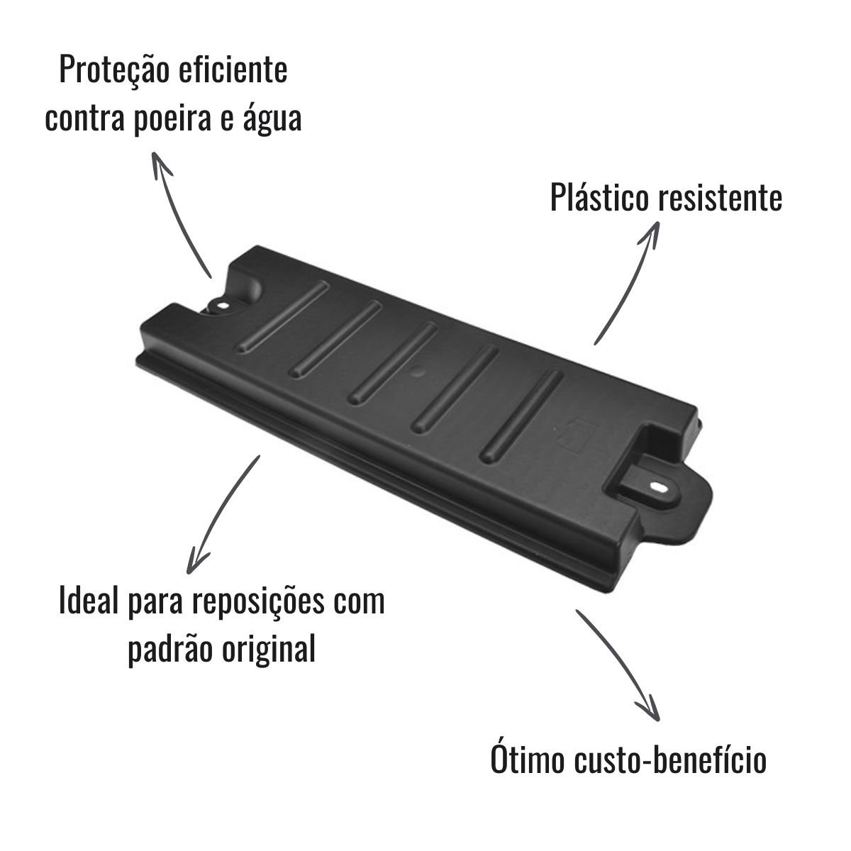 Fabricada em plástico resistente, essa tampa apresenta excelente durabilidade mesmo sob condições severas de uso, além de ser leve e fácil de instalar. Ideal para reposições com padrão original e manutenção da integridade do sistema elétrico.