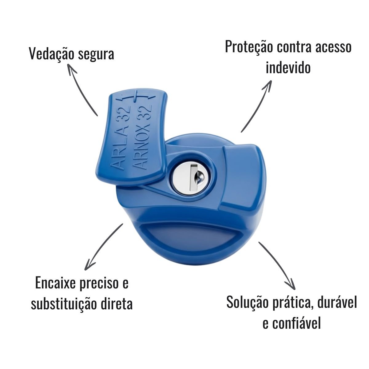 Fabricada pela Embrymagem, oferece encaixe preciso e substituição direta. Compatível com tanques de ARLA 32 e Arnox, acompanha chave para maior segurança no uso diário, sendo uma solução prática, durável e confiável para reposição.