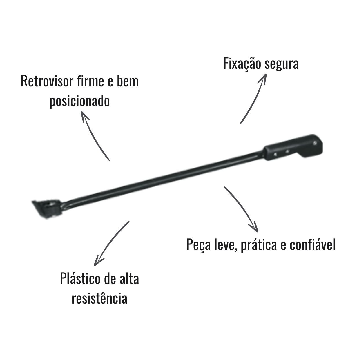 Fabricado em plástico de alta resistência e compatível com ambos os lados (LD ou LE), este tirante oferece fixação segura e durabilidade no uso diário. É ideal para reposição ou manutenção, garantindo que o retrovisor permaneça estável mesmo em trepidações e condições severas de estrada.